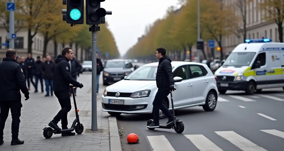 Nastolatek wjechał na czerwonym na hulajnodze i uderzył w auto