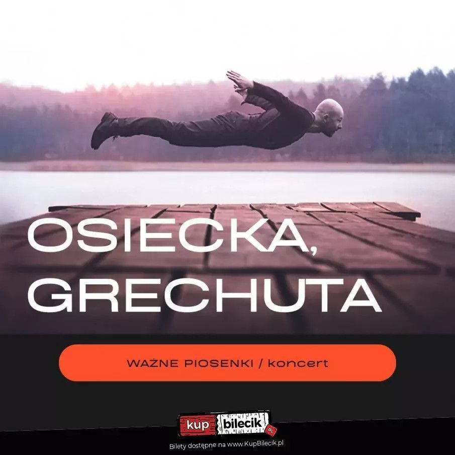 Zapraszamy na koncert poświęcony twórczości Agnieszki Osieckiej oraz Marka Grechuty. W programie znajdą się najwybitniejsze, najbardziej znane piosenki napisane przez Agnieszkę Osiecką: m.in. "Piosenka o okularnikach", "Niech żyje bal", "Kołysanka dla okruszka", "Kiedy mnie już nie będzie", "Co każdy chłopiec wiedzieć powinien oraz wybitne utwory wykonywane przez Marka Grechutę: "W dzikie wino zaplątani", "Niepewność", "Historia jednej podróży", "Korowód", "Świat w obłokach", "Dni których nie znamy" oraz wiele innych.