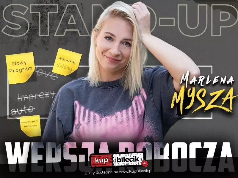 | Nowy Program "Wersja robocza"dodano 2025-10-01 19:14:00 Marlena Mysza wystąpi dla Was ze swoim najnowszym programem stand-upowym "Wersja robocza". +open mic * Nie drukuj biletu, bądź EKO! Wystarczy, jak pokażesz bilet w telefonie. * Osoby przeszkadzające podczas występu będą wypraszane z sali, bez możliwości ubiegania się o zwrot pieniędzy za zakupiony bilet. * Obowiązuje całkowity zakaz nagrywania występu. * Zakup biletu jest równoznaczny z akceptacją powyższych punktów. Bilety do nabycia na: KupBilecik.plStand-up: Marlena Mysza artyści: Marlena MyszaMarlena Mysza - to osoba, która zdecydowanie nie lubi siedzieć cicho - woli stać, od niedawna przede wszystkim na scenie w roli komika. Niby poukładana, a jednak nieogarnięta. O swoich pomyłkach, niedomówieniach, relacjach damsko-męskich chętnie opowiada wszystkim dookoła, nawet tym, którzy już tego słuchać nie chcą. Jest osobą energiczną i żywiołową i taki też jest jej stand up. Bilety do nabycia na: KupBilecik.pl |