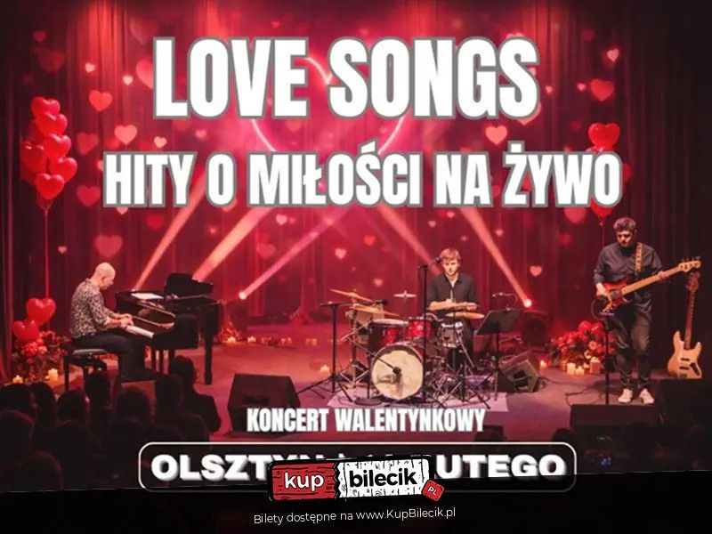 Zapraszamy na wyjątkowy walentynkowy wieczór z muzyką na żywo. Love Songs - Hity o Miłości na Żywo to kameralny koncert oparty na najbardziej rozpoznawalnych utworach inspirowanych miłością, bliskością i emocjami - zagranych w nastrojowych, eleganckich aranżacjach. Bilety do nabycia na: